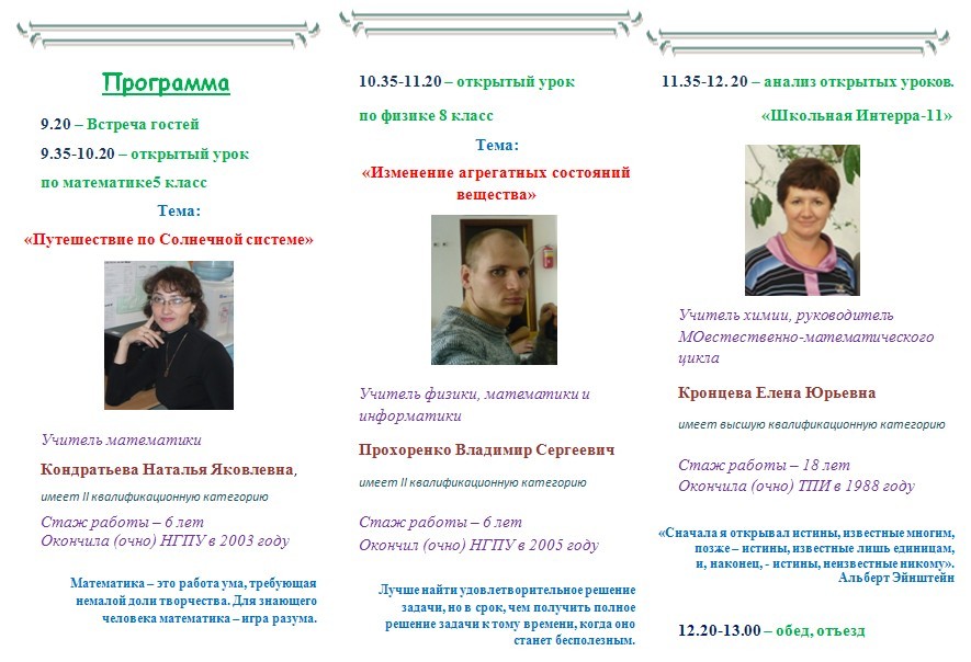 Открытые уроки от МО естественно-математического цикла